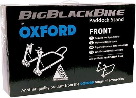 Reviews oxford premium rear coming in at the mid range pricing point is oxford s premium rear paddock stand one thing which stands out on this is the rigidity it uses thick heavy gauge tubing and doesn t feel like it ll give a lot of flex when you re using it on heavier bikes. This is a cheap and cheerful option but make sure your swingarm will fit into the cups provided. The stand arrived next day and was found to be of outstanding quality easily assembled with full fitting instructions. Oxford premium rear paddock stand.