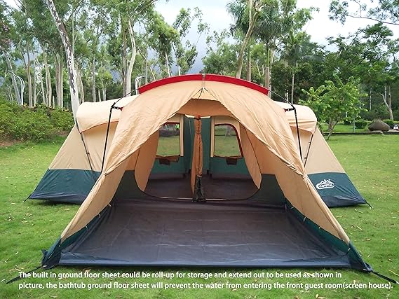 It has such charm to it because it looks like a true cabin lodge that you d find out in the woods with its center peaked roof and brown and green coloring. This is a great family camping option for calm weather. More buying choices 312 42 11 new offers ozark trail 14 person spring lodge cabin camping tent. Cabin camping tent is easy to set up use in the backyard or when camping suitable for beginners and experienced campers useful for families groups adults and kids outings cabin offers 2 rooms with divider curtain for privacy screen room can be converted into an additional room multiple storage pockets 2 storage closets for larger gear.